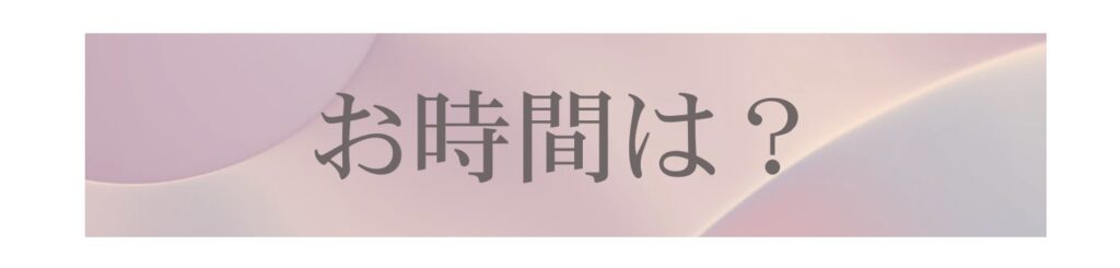初めての方はカウンセリングシート記入があります。お着替えやドリンクのお時間含めて90分ほど余裕をみてください。