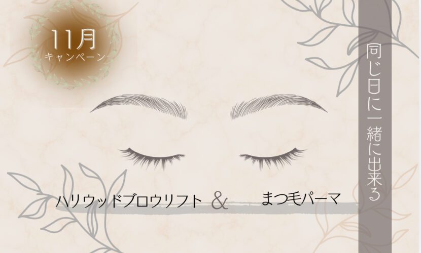 11月はコチラの人気急上昇中の『眉毛ケア』ハリウッドブロウリフトと『まつ毛パーマ』が一緒になったキャンペーンになります。
